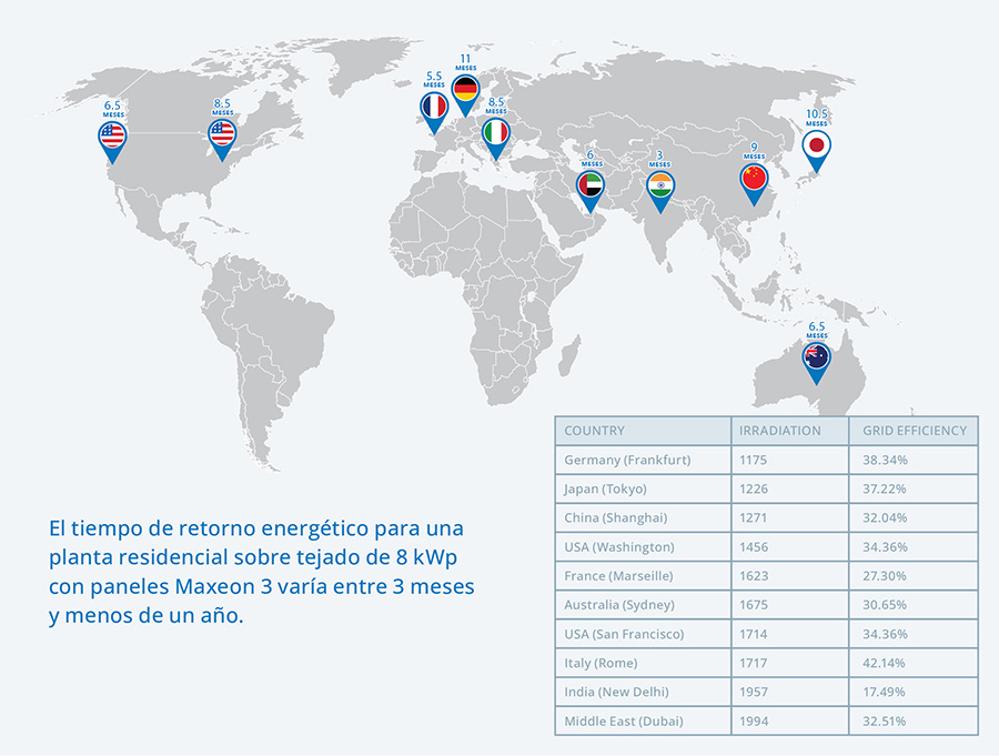 Cuando se comparan los tiempo de retorno energético de distintos paneles fotovoltaicos se constatan diferencias bastante grandes, según un nuevo estudio independiente realizado por el Instituto Fraunhofer para Sistemas de Energía Solar (ISE). Por ejemplo, una instalación residencial en cubierta de 8 kWp con paneles Maxeon 3 instalados en Francia mostró un tiempo de retorno energético un 28 % menor que otra instalación con tecnología PERC, la tecnología más utilizada actualmente disponible
